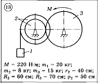 Для приведенных на схемах 1-30 механических систем, используя теорему об изменении кинетической энергии в дифференциальной форме, определить угловое ускорение (варианты 4, 6, 7, 9, 11, 18, 25, 26, 28) или линейное ускорение (остальные варианты) тела 1. Нити невесомы и нерастяжимы. Принятые обозначения: т — массы тел, R и r — радиусы, р — радиус инерции (если он не указан, тело считать однородным цилиндром); при наличии трения указываются f — коэффициент трения скольжения, fк — коэффициент трения качения.