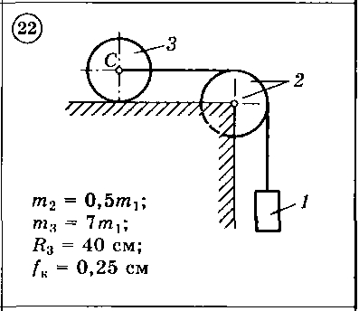 Для приведенных на схемах 1-30 механических систем, используя теорему об изменении кинетической энергии в дифференциальной форме, определить угловое ускорение (варианты 4, 6, 7, 9, 11, 18, 25, 26, 28) или линейное ускорение (остальные варианты) тела 1. Нити невесомы и нерастяжимы. Принятые обозначения: т — массы тел, R и r — радиусы, р — радиус инерции (если он не указан, тело считать однородным цилиндром); при наличии трения указываются f — коэффициент трения скольжения, fк — коэффициент трения качения.