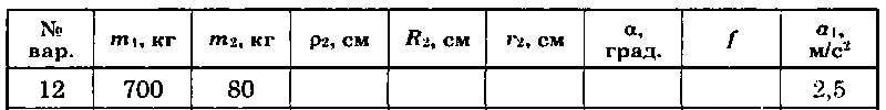 Для приведенных на схемах 1-30 механических систем, используя принцип Даламбера, определить величину силы F,необходимую для перемещения груза с заданным ускорением а1, а также усилие в грузовом тросе. Исходные данные: массы груза т1 и барабана т2, радиус барабана R2 (у двойного барабана имеется также r2), его радиус инерции р2 (если он не указан, тело считать однородным цилиндром), угол а и коэффициент трения скольжения f приведены в таблице. Непронумерованные блоки и катки считать невесомыми. Трением на осях барабана и блоков пренебречь.