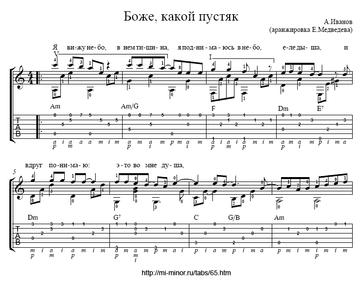 Аранжировка Боже, какой пустяк (Александр Иванов) для одной гитары.