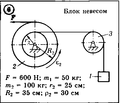 Для приведенных на схемах 1-30 механических систем, используя уравнения Лагранжа второго рода, определить указанное на схеме угловое ускорение или линейное ускорение. Нити невесомы и нерастяжимы. Принятые обозначения: т — массы тел, R и r — радиусы, р — радиус инерции (если он не указан, тело считать однородным цилиндром); при наличии трения указываются: f — коэффициент трения скольжения, fк — коэффициент трения качения.