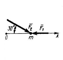 Материальная точка массой m = 5кг движется под действием сил F1 = 3 Н и F2 = 10 Н.
