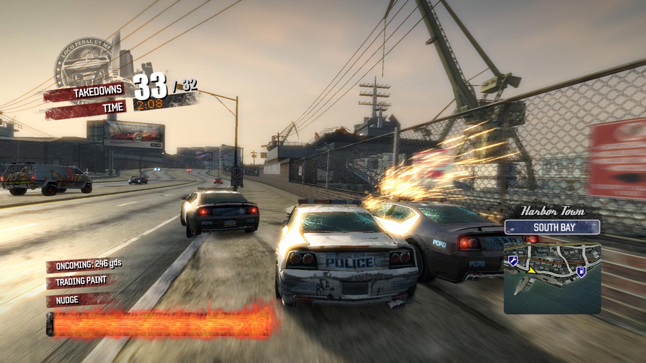 • Безумные соперники! Кроме вас по дорогам Paradise City колесят еще тридцать четыре автоманьяка. Каждый из них владеет уникальными приемами и техникой езды. Будьте осторожны: соперники постараются покончить с вами при первой же возможности!