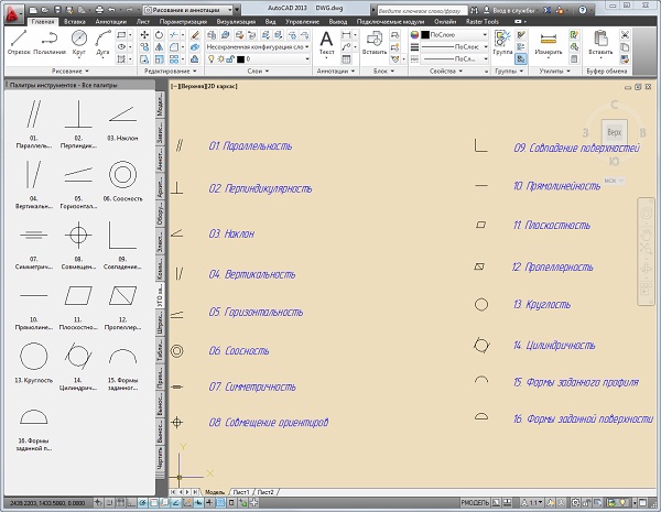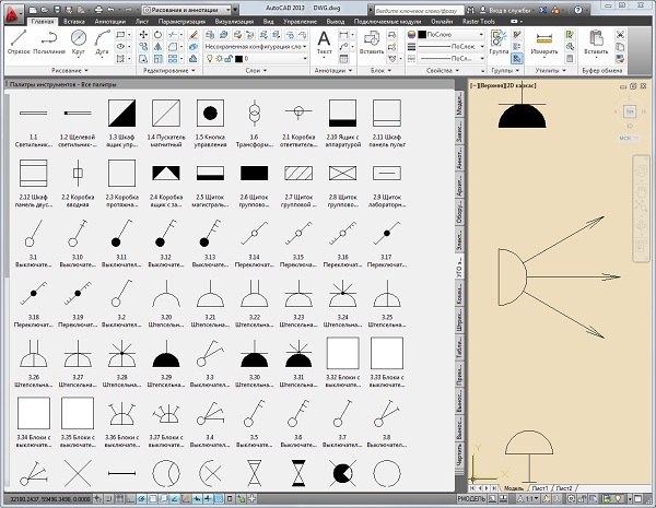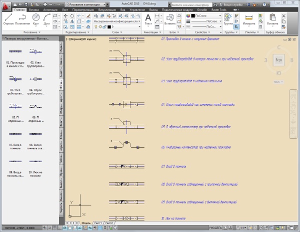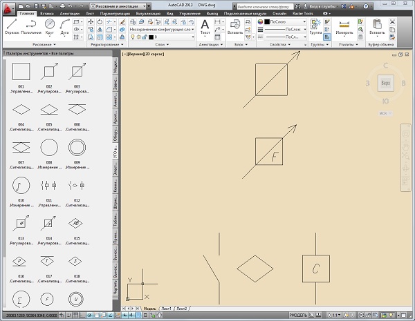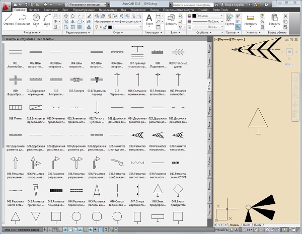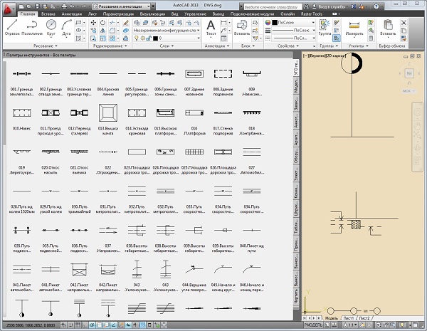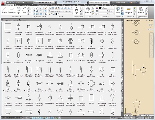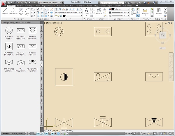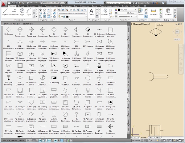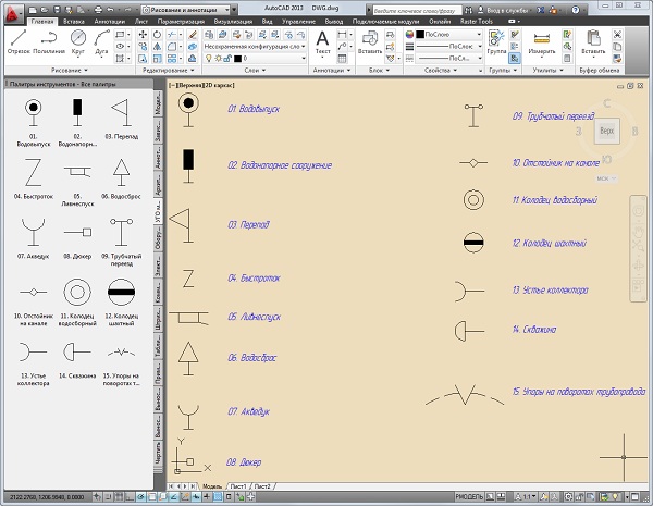 Элементы для удобства собраны в инструментальную палитру блоков AutoCAD 2010 .