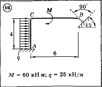 ЗАДАНИЕ С3 (стр. 23 в Диевском 2009 года): Для представленных на схемах 1-30 составных конструкций найти реакции опор. Размеры указаны в метрах. Весом элементов конструкций пренебречь.