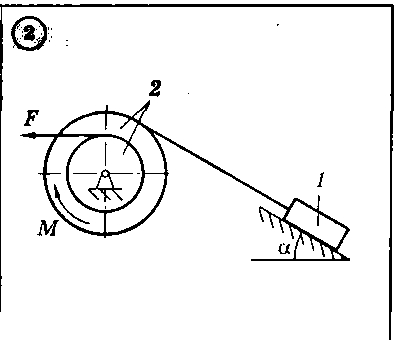 Д4 ЗАДАНИЕ 2: Для представленных на рисунках схем 1-30, используя принцип Лагранжа, определить величину силы F (при наличии трения — максимальное значение этой величины), при которой механическая система будет находиться в равновесии. Исходные данные: вес груза G1 = 20 кН, вращающий момент М = 1 кН*м, радиус барабана R2 = 0,4 м (у двойного барабана имеется также r2=0,2 м), угол а = 30° и коэффициент трения скольжения f = 0,5. Ненумерованные блоки и катки считать невесомыми. Трением на осях барабана и блоков пренебречь.