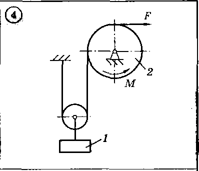 Д4 ЗАДАНИЕ 2: Для представленных на рисунках схем 1-30, используя принцип Лагранжа, определить величину силы F (при наличии трения — максимальное значение этой величины), при которой механическая система будет находиться в равновесии. Исходные данные: вес груза G1 = 20 кН, вращающий момент М = 1 кН*м, радиус барабана R2 = 0,4 м (у двойного барабана имеется также r2=0,2 м), угол а = 30° и коэффициент трения скольжения f = 0,5. Ненумерованные блоки и катки считать невесомыми. Трением на осях барабана и блоков пренебречь.