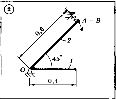 Д7 ЗАДАНИЕ 1 - СВОБОДНЫЕ КОЛЕБАНИЯ: Для приведенных на схемах 1-30 механических систем определить собственную частоту колебаний. Механические системы, показанные на схемах в положении равновесия, могут совершать свободные колебания, вращаясь вокруг горизонтальной оси z, проходящей через неподвижную точку О. Системы состоят из жестко скрепленных друг с другом тел: тонких однородных стержней 1 и 2 или однородной пластины 3 и точечных грузов 4. Масса 1 м длины стержней равна 25 кг, масса 1 м2 площади пластины — 50 кг, масса точечного груза — 20 кг. Упругие элементы имеют коэффициент жесткости с = 10 кН/м. Размеры ча-стей системы указаны в метрах.