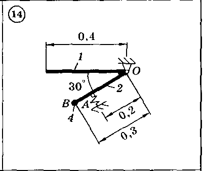 Д7 ЗАДАНИЕ 1 - СВОБОДНЫЕ КОЛЕБАНИЯ: Для приведенных на схемах 1-30 механических систем определить собственную частоту колебаний. Механические системы, показанные на схемах в положении равновесия, могут совершать свободные колебания, вращаясь вокруг горизонтальной оси z, проходящей через неподвижную точку О. Системы состоят из жестко скрепленных друг с другом тел: тонких однородных стержней 1 и 2 или однородной пластины 3 и точечных грузов 4. Масса 1 м длины стержней равна 25 кг, масса 1 м2 площади пластины — 50 кг, масса точечного груза — 20 кг. Упругие элементы имеют коэффициент жесткости с = 10 кН/м. Размеры ча-стей системы указаны в метрах.