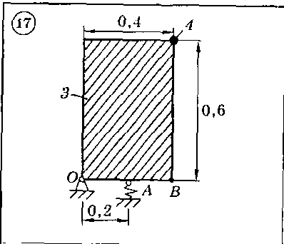 Д7 ЗАДАНИЕ 1 - СВОБОДНЫЕ КОЛЕБАНИЯ: Для приведенных на схемах 1-30 механических систем определить собственную частоту колебаний. Механические системы, показанные на схемах в положении равновесия, могут совершать свободные колебания, вращаясь вокруг горизонтальной оси z, проходящей через неподвижную точку О. Системы состоят из жестко скрепленных друг с другом тел: тонких однородных стержней 1 и 2 или однородной пластины 3 и точечных грузов 4. Масса 1 м длины стержней равна 25 кг, масса 1 м2 площади пластины — 50 кг, масса точечного груза — 20 кг. Упругие элементы имеют коэффициент жесткости с = 10 кН/м. Размеры ча-стей системы указаны в метрах.