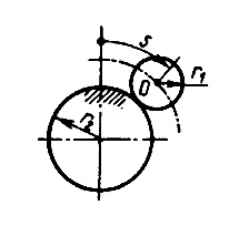 Однородный диск радиуса r1 = 12 см мас­сой 10 кг катится по окружности радиуса r2 = 20 см. Центр О диска перемещается со­гласно уравнению s = 50t2, где s - в см. Определить модуль главного вектора сил инер­ции диска в момент времени t = 1 с. (Ответ 32,8)