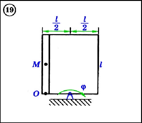 В приведенной ниже схеме рассматривается движение точки М в желобе вращающегося тела. По заданному в таблице уравнениию относительного движения ОМ(t), переносного движения φ(t) и геометрическим размерам определить абсолютную скорость и абсолютное ускорение точки в указанный момент времени.