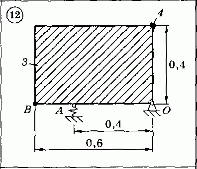 Кроме того, на систему начинает действовать вынуждающая сила F = F0sinpt, где F0 — 60 Н, р = 25 с-1 — амплитуда и частота вынуждающей силы. Вынуждающая сила приложена в точке В и действует параллельно оси упругого элемента. (Если точка В совпадает с точкой А, на схемах указывается В = А.)