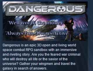 Dangerous is an epic 3D open and living world space sandbox combat RPG with an immersive and riveting story. You have been awoken from cryo sleep a century later, and must discover the truth. Are you the feared war criminal who will destroy all life or the savior of the universe? Gather your wingmen and travel the galaxy in search of answers. Along the way, you´ll encounter a Universal AI, a shadow group pulling history´s strings, a princess, a schizophrenic robot, a beautiful lieutenant of the Royal Navy, a fearsome mercenary, a suicidal slave, and a playboy fighter ace.