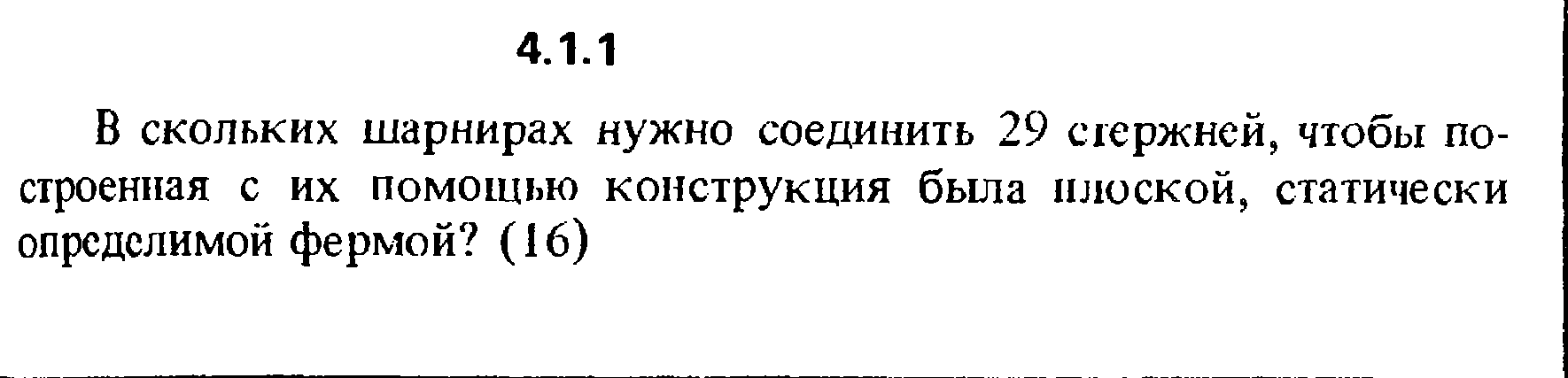 В скольких шарнирах нужно соединить 29 стержней, чтобы построенная с их помощью конструкция была плоской, статически определимой фермой?