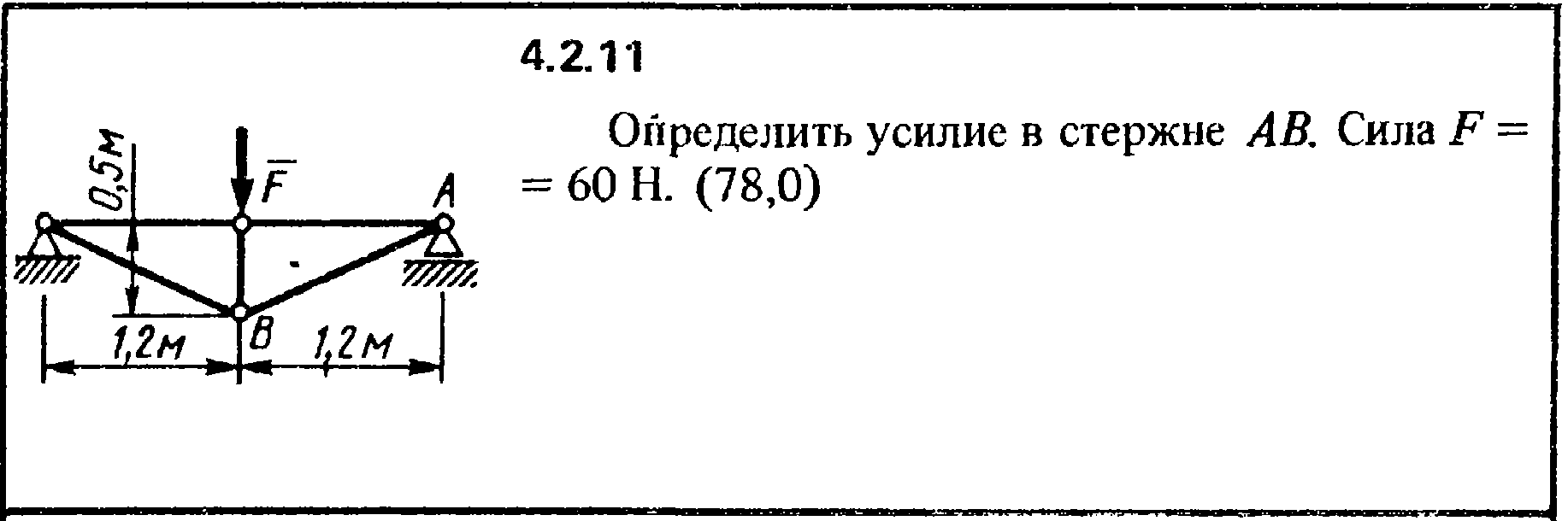 Определить усилие в стержне АВ. Сила F = 60 Н.