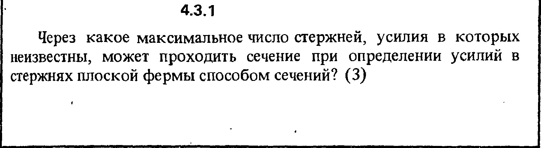 Через какое максимальное число стержней, усилия в которых неизвестны, может проходить сечение при определении усилий в стержнях плоской фермы способом сечений?