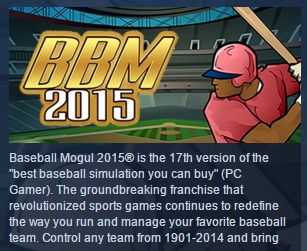 Baseball Mogul 2015® begins in any year you choose, from 1901 to 2014 with the full roster of your favorite team -- or an entirely fictional team of your own creation. Your involvement as GM does not stop in the team´s front office. Baseball Mogul gives you complete control over your team on the field. You start by setting the starting defense, batting order and pitching rotation for your team. On game day, you choose your level of involvement. You can retire to the luxury box and make calls to the dugout as needed. Or you can take control of each player, choosing what pitches to throw and when to bunt or go for an extra base. A powerful game engine simulates each pitch of the game based on customized player ratings and over 100 years of historical data, assuring you the maximum realism possible! Baseball Mogul is designed to help you manage your team over many simulated years. Manage your team one day at a time, or let the computer simulate weeks or months at a stretch so you can play for virtual years or decades. As your players age, their abilities mature and decline realistically. Don´t forget to build your team for the long term, rather than spending all your money on free agents this season. Watch your team rise and fall in the standings, watch your bank statement, and read the news stories to stay on top of what´s happening with all the ball clubs in both leagues. If you pick the right players, manage your finances well, and stick to a winning strategy, your team may win the Championship, and you too may become a Baseball Mogul!