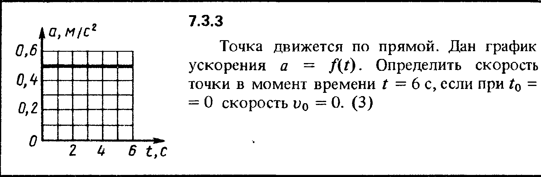 Точка движется по прямой. Дан график ускорения а = f(t). Определить скорость точки в момент времени t = 6 с, если при t0 = 0 скорость v0 = 0.