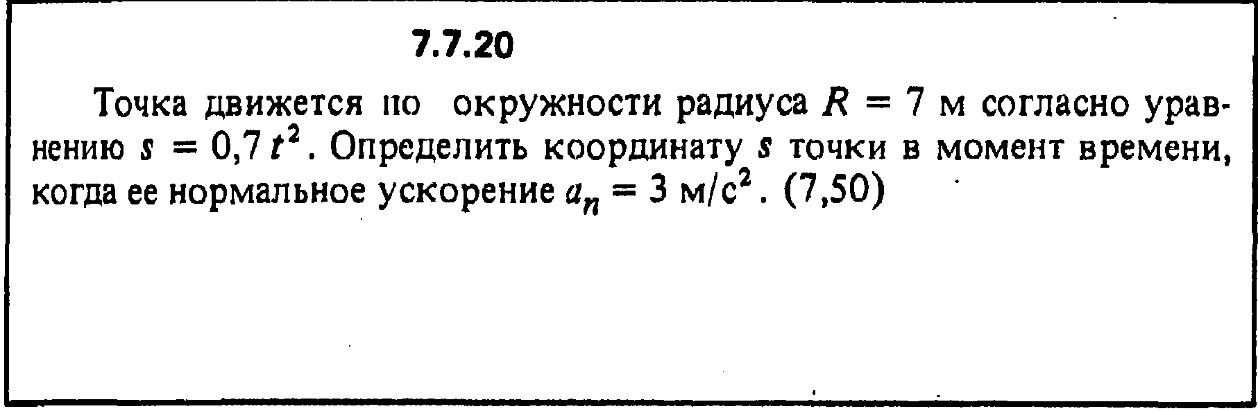 (Глава 2 - КИНЕМАТИКА, тема - 7.7: Нормальное ускорение точки) по теоретической механике из сборника коротких задач Кепе О.Е., Я.А. Виба, О.П. Грапис, Я.А. Светиныш и др. издательство Москва /Высшая школа/, 1989, 2009, 2012 гг.