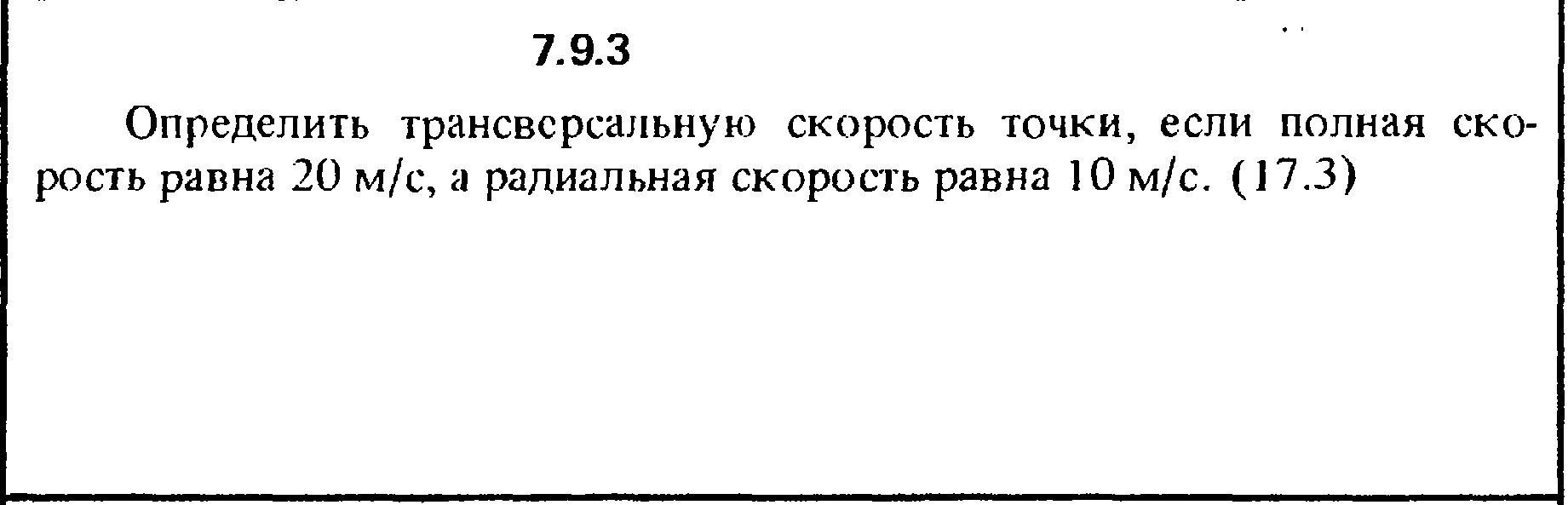 Определить трансвереальную скорость точки, если полная скорость равна 20 м/с, а радиальная скорость равна 10 м/с.