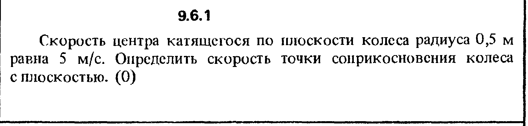 Скорость центра катящегося по плоскости колеса радиуса 0,5 м равна 5 м/с. Определить скорость точки соприкосновения колеса с плоскостью.