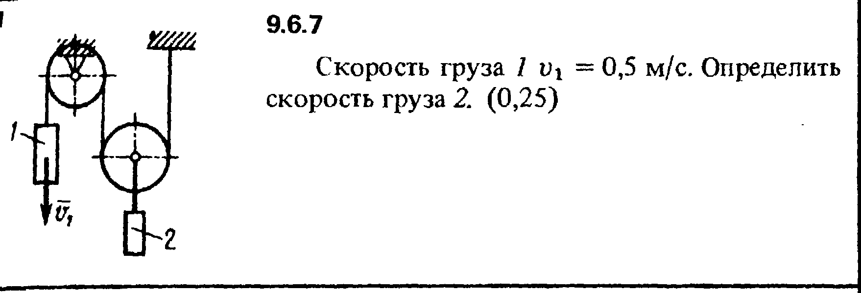 Скорость груза 1 v1 = 0,5 м/с. Определить скорость груза 2.