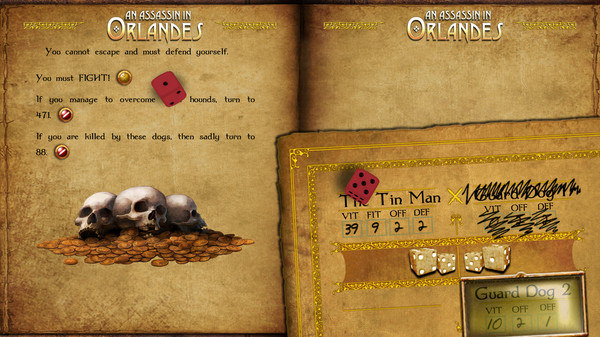 An Assassin in Orlandes is a gamebook where you control the story by deciding what action to take at key points. Use dice to determine your vitality, fitness and luck, then explore the world of Orlandes by battling foes and solving puzzles.