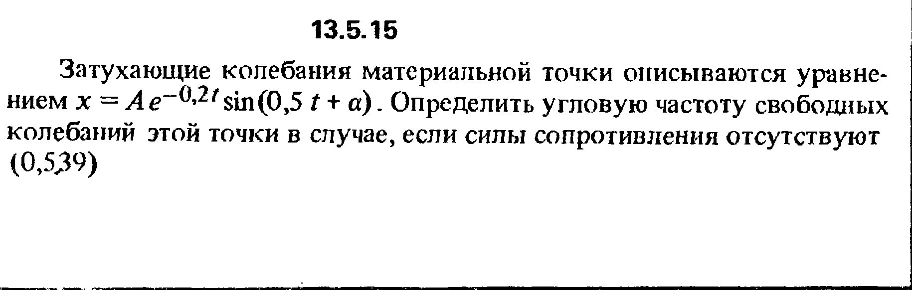 13.5.15. Затухающие колебания материальной точки описываются уравнением х = Аe-0,2tsin(0,5t + а). Определить угловую частоту свободных колебаний этой точки в случае, если силы сопротивления отсутствуют.
