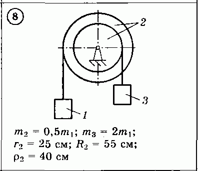 Для приведенных на схемах 1-30 механических систем, используя теорему об изменении кинетической энергии в дифференциальной форме, определить угловое ускорение (варианты 4, 6, 7, 9, 11, 18, 25, 26, 28) или линейное ускорение (остальные варианты) тела 1. Нити невесомы и нерастяжимы. Принятые обозначения: т — массы тел, R и r — радиусы, р — радиус инерции (если он не указан, тело считать однородным цилиндром); при наличии трения указываются f — коэффициент трения скольжения, fк — коэффициент трения качения.