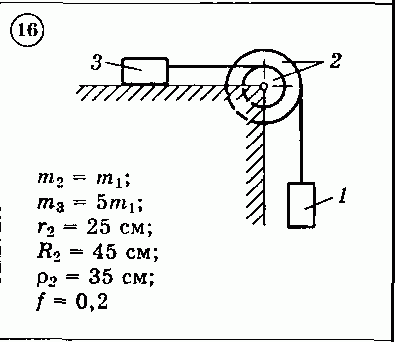 Для приведенных на схемах 1-30 механических систем, используя теорему об изменении кинетической энергии в дифференциальной форме, определить угловое ускорение (варианты 4, 6, 7, 9, 11, 18, 25, 26, 28) или линейное ускорение (остальные варианты) тела 1. Нити невесомы и нерастяжимы. Принятые обозначения: т — массы тел, R и r — радиусы, р — радиус инерции (если он не указан, тело считать однородным цилиндром); при наличии трения указываются f — коэффициент трения скольжения, fк — коэффициент трения качения.