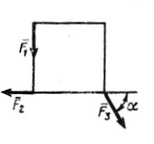 При каком значении угла α равнодейству­ющая системы трех сил будет направлена вер­тикально, если силы F1 = 3,46Н, F2 = 2Н, F3 = 4Н? (Ответ 60,0)