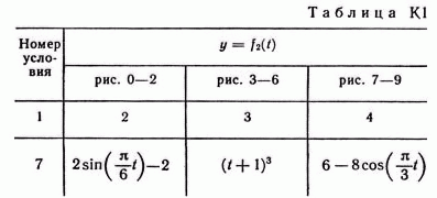 Зависимость x = f1(t) указана непосредственно на рисунках, а зависимость y = f2 дана в табл. K1 (для рис. 0—2 в столбце 2, для рис. 3—6 в столбце 3, для рис. 7—9 в столбце 4).