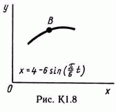 Точка В движется в плоскости xy (рис. К1.0 — К 1.9, табл. К1; траектория точки на рисунках показана условно). Закон движения точки задается уравнениями: x = f1(t), y = f2, где x и y выражены в сантиметрах, t — в секундах.