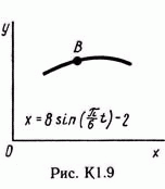 Точка В движется в плоскости xy (рис. К1.0 — К 1.9, табл. К1; траектория точки на рисунках показана условно). Закон движения точки задается уравнениями: x = f1(t), y = f2, где x и y выражены в сантиметрах, t — в секундах.