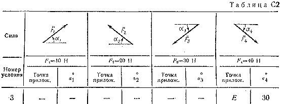 На брусья кроме сил тяжести действуют пара сил с моментом М = 50 Н·м и сила, величина которой, направление и точка приложения указаны в табл. С2.