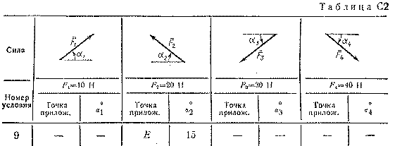 На брусья кроме сил тяжести действуют пара сил с моментом М = 50 Н·м и сила, величина которой, направление и точка приложения указаны в табл. С2.