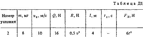 Груз D массой m, получив в точке А начальную скорость v0, движется в изогнутой трубе ABC, расположенной в вертикальной плоскости; участки трубы или оба наклонные, или один горизонтальный, а другой наклонный (рис. Д1.0-Д1.9 табл. Д1). На рисунке АВ на груз кроме силы тяжести действуют постоянная сила Q (ее направление показано на рисунках) и сила сопротивления среды R, зависит от скорости груза v (направлена против движения).
