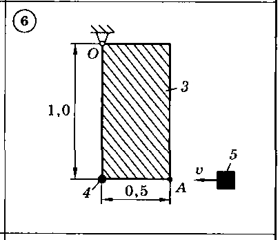 Тело 5 (материальная точка) массой т5 = 30 кг, двигаясь со скоростью v = 4 м/с, ударяется о неподвижную конструкцию в точке А, причем удар является абсолютно неупругим.