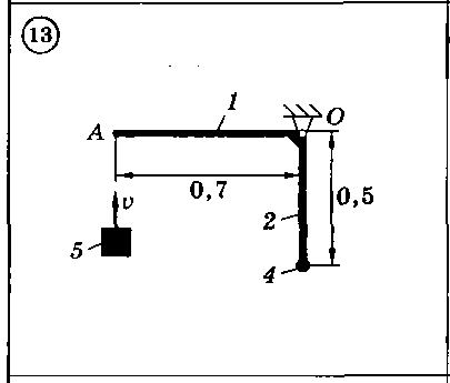 Тело 5 (материальная точка) массой т5 = 30 кг, двигаясь со скоростью v = 4 м/с, ударяется о неподвижную конструкцию в точке А, причем удар является абсолютно неупругим.