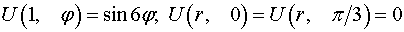 Решение задачи 8.1 (задача 8. Найти решение уравнения Лапласа дельтаu=0 в круговом секторе 0 < r < 1, 0 < Фи < a (r и Фи - полярные координаты, а < 2Пи), на границе которого искомая функция удовлетворяет следующим условиям: согласно варианта (стр. 220). Вариант 1) из решебника к сборнику задач по высшей математике раздела XI: Уравнения Математической Физики (УМФ).