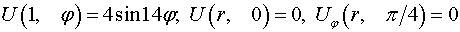 Решение задачи 8.4 (задача 8. Найти решение уравнения Лапласа дельтаu=0 в круговом секторе 0 < r < 1, 0 < Фи < a (r и Фи - полярные координаты, а < 2Пи), на границе которого искомая функция удовлетворяет следующим условиям: согласно варианта (стр. 220). Вариант 4) из решебника к сборнику задач по высшей математике раздела XI: Уравнения Математической Физики (УМФ).