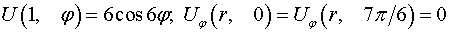 Решение задачи 8.6 (задача 8. Найти решение уравнения Лапласа дельтаu=0 в круговом секторе 0 < r < 1, 0 < Фи < a (r и Фи - полярные координаты, а < 2Пи), на границе которого искомая функция удовлетворяет следующим условиям: согласно варианта (стр. 220). Вариант 6) из решебника к сборнику задач по высшей математике раздела XI: Уравнения Математической Физики (УМФ).