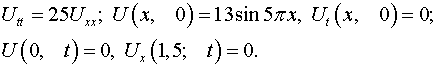 Решение задачи 13.13 (задача 13. Решить смешанную задачу для своего варианта (стр. 227). Вариант 13) из решебника по высшей математике из раздела XI: Уравнения Математической Физики (УМФ).