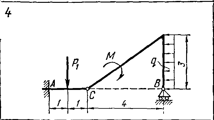 Решение задачи С5 вариант 4 из решебника по теоретической механике Яблонский А.А. 1978 г., на тему: С5 Определение реакций опор составной конструкции (система двух тел) (стр. 29 задачника)..