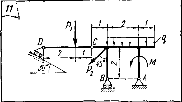 Решение задачи С5 вариант 11 из решебника по теоретической механике Яблонский А.А. 1978 г., на тему: С5 Определение реакций опор составной конструкции (система двух тел) (стр. 29 задачника)..