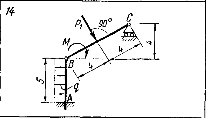 Решение задачи С5 вариант 14 из решебника по теоретической механике Яблонский А.А. 1978 г., на тему: С5 Определение реакций опор составной конструкции (система двух тел) (стр. 29 задачника)..