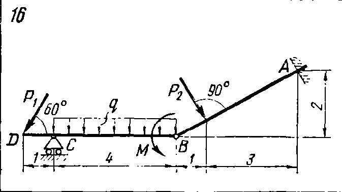 Решение задачи С5 вариант 16 из решебника по теоретической механике Яблонский А.А. 1978 г., на тему: С5 Определение реакций опор составной конструкции (система двух тел) (стр. 29 задачника)..