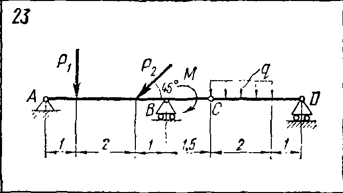 Решение задачи С5 вариант 23 из решебника по теоретической механике Яблонский А.А. 1978 г., на тему: С5 Определение реакций опор составной конструкции (система двух тел) (стр. 29 задачника)..