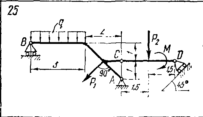 Решение задачи С5 вариант 25 из решебника по теоретической механике Яблонский А.А. 1978 г., на тему: С5 Определение реакций опор составной конструкции (система двух тел) (стр. 29 задачника)..